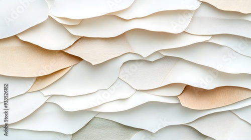 © Paul, Fototapeta premium Natural sycamore bark texture, with wavy, smooth surfaces and a color palette of white, brown, and green, showing natural variations