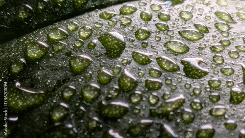 © mizuya003, Fototapeta premium Natural texture of green leaf with dew drops