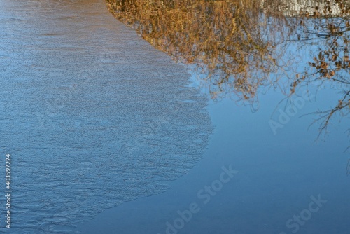 © butus, Fototapeta premium natural texture of lake and blue water with pieces of gray ice
