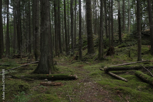 Fototapeta premium Natural variety that is observable in a deep forest, in West Canada. Vancouver. Early morning and daytime.