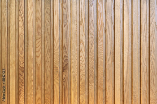 Naklejka premium Natural vertical wooden slats create a warm textured surface, evoking organic simplicity and modern interior style suitable for versatile design uses.