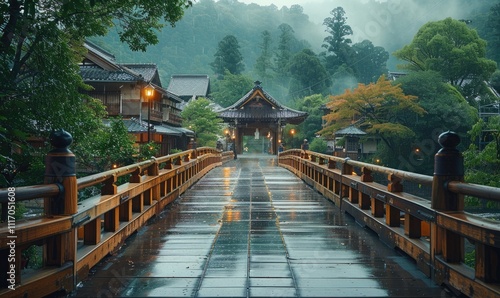 © Puji, Fototapeta premium Natural views of Japanese cities with beautiful building structures and nature ai generated