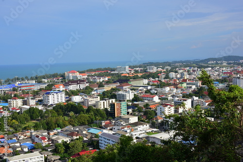 © tharathip, Fototapeta premium Natural views with the sea and mountains of Songkhla seen from the top of the mountain.
