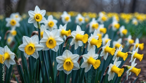 Fototapeta premium Natural wild Daffodils showcasing yellow, golden, and white colors