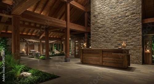 © terbee, Obraz premium Natural wood and stone textures spa design