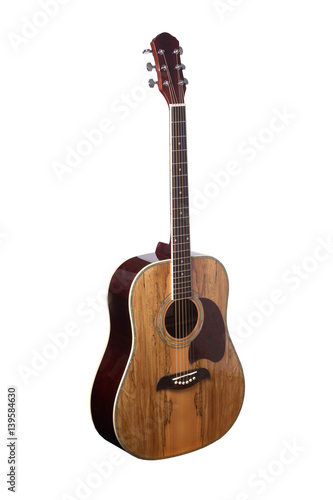 © ALIAKSANDR, Naklejka premium Natural Wooden Classical Acoustic Guitar Isolated on a White Background