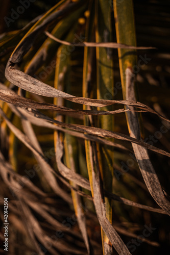 © insomniafoto, Obraz premium Naturalne tło, zielone liście palmy kokosowej, zbliżenie.