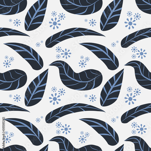 © Ahctiqus, Obraz premium Nature and Blue Leaves seamless pattern