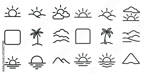 Fototapeta premium Nature and holidays line icons set – outline, linear, vacation and travel...