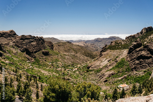 Naklejka premium Nature and landscape of the Gran Canaria. Rocky mountains range, valleys, ocean.