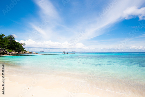 © BUDDEE, Fototapeta premium Nature and travel. Beach sea and blue sky with clouds background.