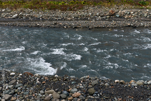 © Oksana Smyshliaeva, Obraz premium nature and travel concept - river water flow and stones