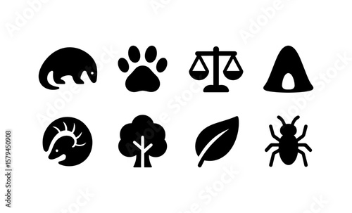 Fototapeta premium Nature and wildlife icons: animal, plant, and balance symbols in silhouette...