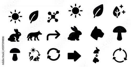 © Coosh448, Fototapeta premium Nature and wildlife silhouette icons set – simple, solid, environment symbols