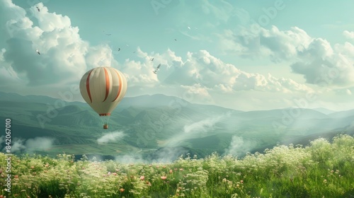 © TheWaterMeloonProjec, Fototapeta premium Nature backdrop with a floating balloon