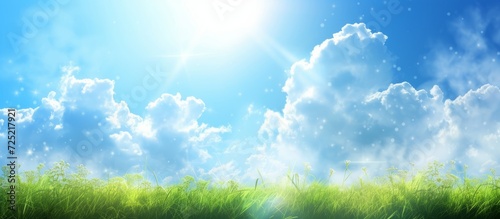 Fototapeta premium Nature backdrop with blue sky, white clouds, and sunshine.
