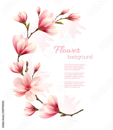 Fototapeta premium Nature background with blossom brunch of pink flowers. Vector