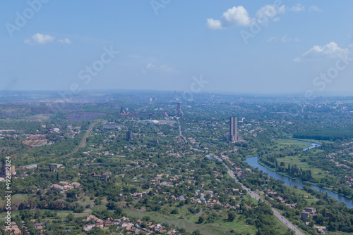 © Denis Chubchenko, Obraz premium Nature from above. Panoramic view of the industrial city of Krivoy Rog in Ukraine. Beautiful landscape.