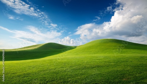 © Miller, Fototapeta premium nature green grass hill with blue sky and clouds landscape