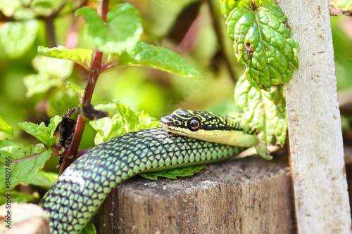 © afe207, Naklejka premium nature green snake on peppermint plant in asia