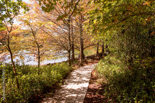 Fototapeta premium Nature in autumn, walk in the middle of nature, light through the trees