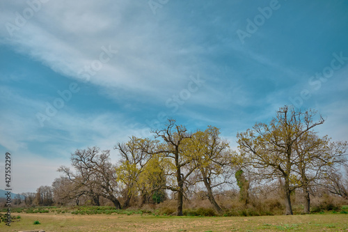 Obraz premium Nature in floodplain in Karacabey Turkey. Trees extends to sky and many types...