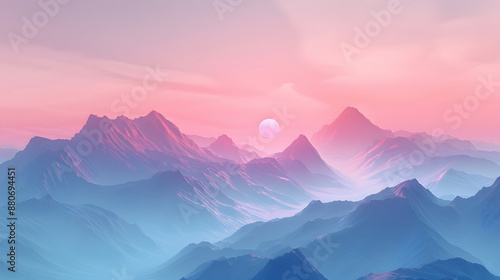 Fototapeta premium Nature-Inspired Aesthetic Wallpaper Majestic Mountains at Sunrise with Soft Pastel Colors and Gentle Morning Light