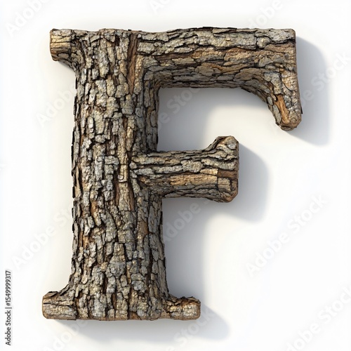 © Escapefrommm, Fototapeta premium Nature-inspired wooden letter f art installation urban gallery 3d artwork contemporary environment close-up view eco-friendly concept for nature art lovers