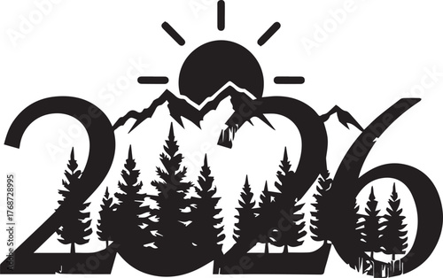 Fototapeta premium Nature Landscape 2026 Black Vector with Mountains and Sunrise