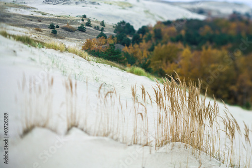 Fototapeta premium Nature landscape. Grass grows on the sand. Autumn forest on the