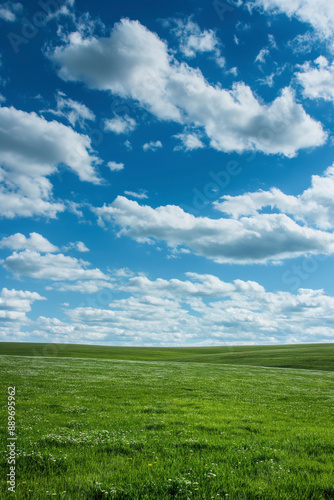 © Daniil, Fototapeta premium Nature landscape with grass and blue sky with clouds