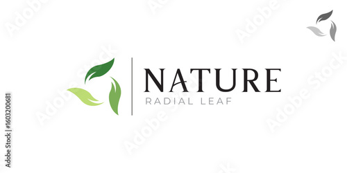 © Superherzl, Fototapeta premium Nature logo with three-leaf radial repeat pattern in modern style flat vector design