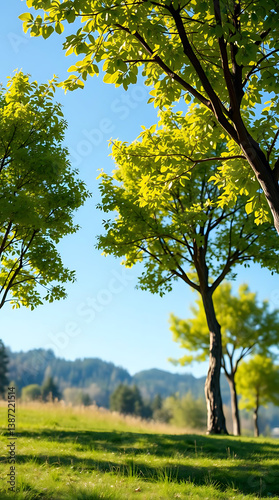 © Feel Surreal, Fototapeta premium Nature of beautiful trees as cover page background, created by generative ai