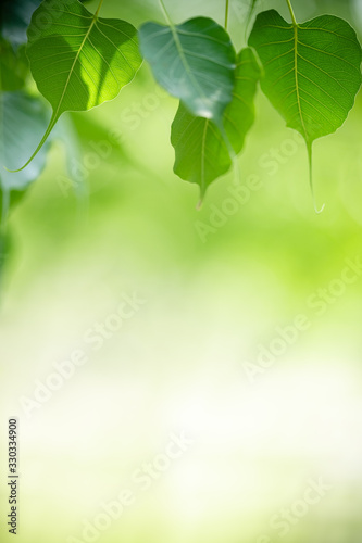 © Fahkamram, Naklejka premium Nature of green leaf in garden at summer. Natural green leaves plants using as spring background cover page greenery environment ecology wallpaper