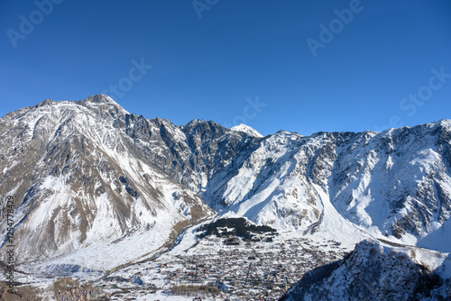 © chendongshan, Fototapeta premium Nature of snow-capped mountains in the Caucasus Mountains in winter