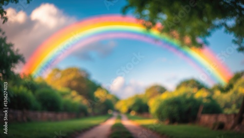 © ArtificialHorizons, Naklejka premium Nature park scene featuring a rainbow arching across the sky
