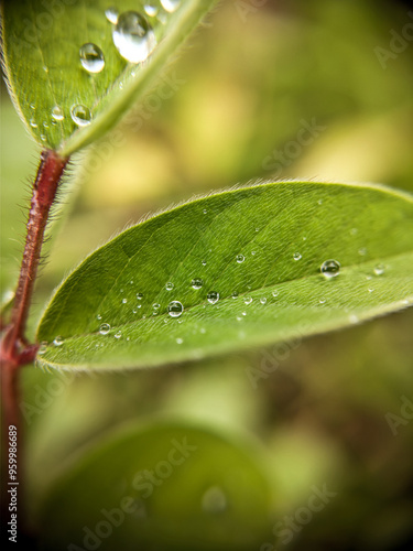 Fototapeta premium Nature Photography, Close-up of Fresh Green Leaf with Water Droplets in Soft...
