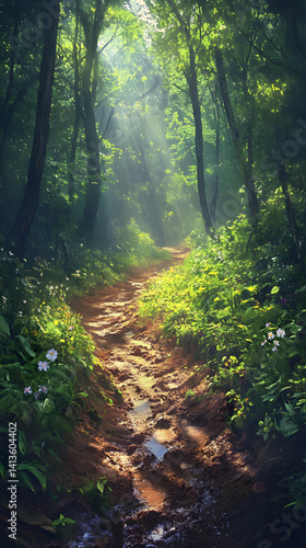 Fototapeta premium Nature's Challenge: Navigating Muddy Trails in Lush Paradise