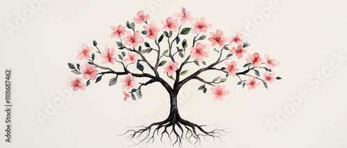 Fototapeta premium Nature's growth artistic tree with blossoms and roots for floral home decor...