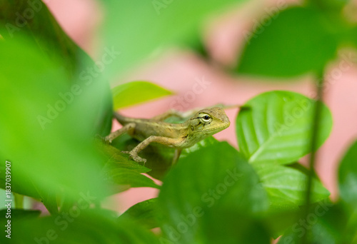 © Agni, Naklejka premium Nature's little resident on a leafy perch