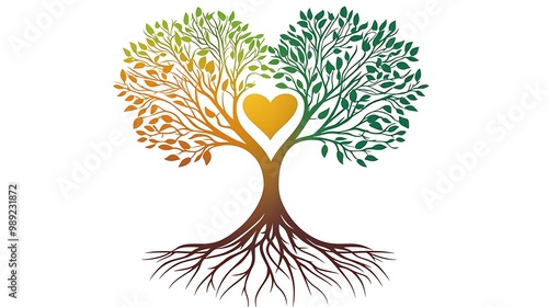 © Keattipoom, Naklejka premium Nature's Love - Tree Root Heart Logo Design Vector on White Background