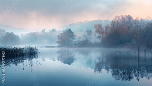 © 대연 김, Fototapeta premium Nature’s Palette: Contrast of Pastel Colors in a Misty Evening Landscape