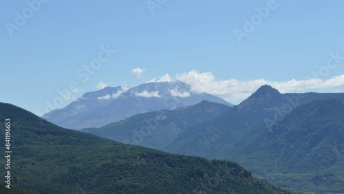 Naklejka premium Nature's Rebirth: Forest and Water at Mt. St. Helens