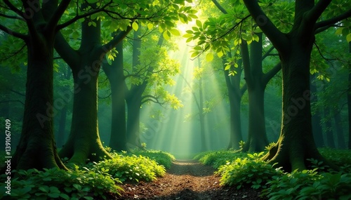 © Taya, Naklejka premium Nature's repeating leaf and branch formations in a forest , intricate, nature, trees
