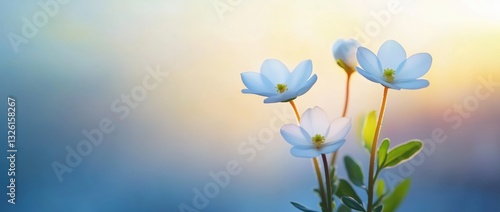 © Chuemon, Naklejka premium Nature's Serenity White Flowers Blooming by the Water Relaxing Environment Close-Up View Tranquility Concept