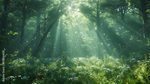 Fototapeta premium "Nature's Spotlight: Sunbeams in the Forest"