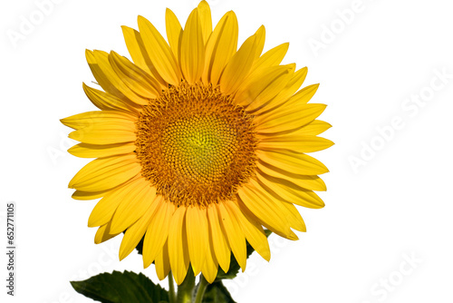 Naklejka premium Nature's Spotlight: Sunflower's Brilliance against a White Stage