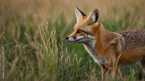 Fototapeta premium Nature’s Stealth: A Kit Fox Hidden, Ready for the Perfect Moment