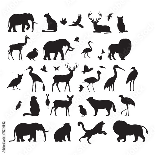 © Vista, Naklejka premium Nature's Symphony: Set of Wild Animals Silhouette Illustrating the Beauty of the Wild - Wildlife Silhouette - Animals Vector