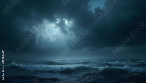 Obraz premium Nature's Tension: Dark Clouds and Furious Sea